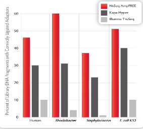 The NxSeq? AmpFREE Low DNA Library Kit allows you to build the best fragment DNA libraries possible. We optimized each step of the protocol to ensure peak performance on Illumina sequencers. In addition, these kits require only 75 ng of sheared DNA input, and produce libraries in about 2 hours using a streamlined, easy to follow protocol.