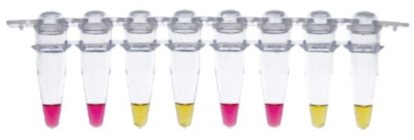 陰性的反應(yīng)結(jié)果顯示為粉色,陽性的反應(yīng)結(jié)果會變?yōu)辄S色