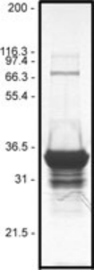 Protein purity is determined by scanning densitometry of Coomassie Blue stained protein on a 12% SDS polyacrylamide gel. GST-PAK-PBD protein is >80% pure (see Figure 2).