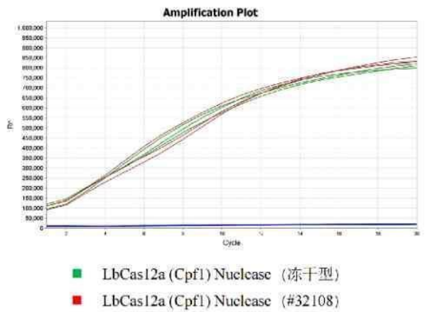 本產(chǎn)品將無甘油LbCas12a核酸酶凍干,可用于常溫運(yùn)輸及保存,使用配套的凍干Cas酶復(fù)溶液復(fù)溶后,具有與本公司非凍干型LbCas12a (Cpf1) Nuclease(#32108)同等的反應(yīng)活性。本產(chǎn)品包括可用于單個(gè)反應(yīng)的酶凍干粉及凍干球等多種凍干形態(tài),滿足不同下游反應(yīng)體系構(gòu)建的需求。