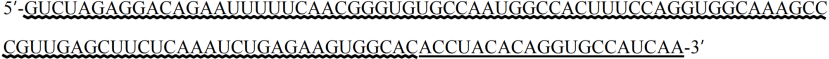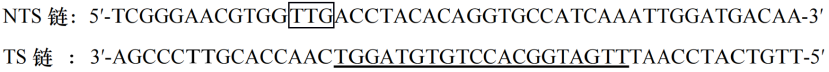其中波浪線部分為 Cas12b sgRNA scaffold 的部分反向互補序列,為固定序列。下劃線部分為 Target Sequence。
