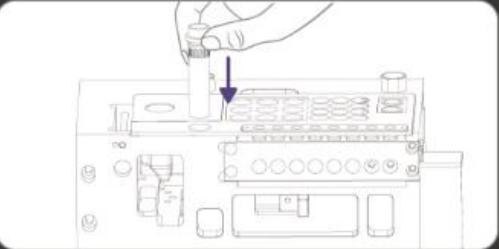 3、放入樣本:擰開(kāi)樣本轉(zhuǎn)移管管帽,插入到一體化檢測(cè)裝置中的指定位置,關(guān)閉艙門(mén)