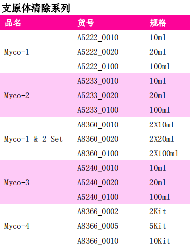 注:Myco-3停用2周后方可進(jìn)行支原體檢測(cè)。