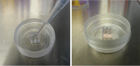 在ibidi細(xì)胞插件的每孔中分別加入1.5 ×104的PMVECs和Pericyte的細(xì)胞懸液。注意不要大力晃動(dòng)培養(yǎng)皿。以防止細(xì)胞不均勻。