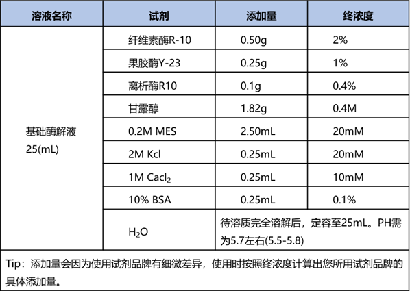 在前期條件摸索時,可以先確立以纖維素酶 R-10、果膠酶 Y-23 為基礎(chǔ)酶解液配方,根據(jù)出現(xiàn)的實(shí)驗(yàn)情況來對酶解液進(jìn)行優(yōu)化,以下是詳細(xì)說明: