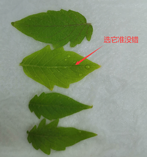 2、取材篩選:葉片組織取材時優(yōu)先選取顏色為鮮綠色且葉片較為柔軟的部分進(jìn)行實(shí)驗(yàn)(如下圖所示);