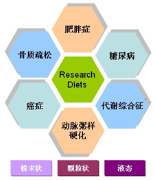 美國(guó)Research Diets公司是一家專業(yè)生產(chǎn)實(shí)驗(yàn)室動(dòng)物飼料的大型公司,1984年以來(lái)一直致力于研究特定飼料成分對(duì)實(shí)驗(yàn)動(dòng)物表型表達(dá)的影響,包括誘導(dǎo)動(dòng)物肥胖、糖尿病、癌癥、骨質(zhì)疏松、動(dòng)脈硬化、毒理學(xué)、代謝綜合癥、高血壓等各個(gè)研究方向的特定飼料。