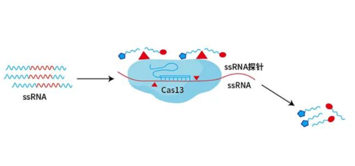 Cas13a核酸酶(又名 C2c2)是依賴于 RNA 介導(dǎo)的 RNA 內(nèi)切核酸酶。在靶標(biāo)單鏈 RNA 存在 PFS序 列的情況下,可特異地切割靶標(biāo) RNA。此外,Cas13a 還具有依賴于靶標(biāo)單鏈 RNA 的反式切割活性,可用于開發(fā)靶標(biāo)核酸的快速檢測試劑盒。例如,MIT的張鋒團(tuán)隊便利用 Cas13a 蛋白開發(fā)了名為“SHERLOCK”的下一代分子診斷系統(tǒng)。對于細(xì)菌而言,Cas13a這種反式切割活性是有意義的。若細(xì)菌被噬菌體感染,它能夠激活程序性細(xì)胞死亡或休眠狀態(tài),以限制感染在整個群體中的傳播。像Cas13a一樣,Cas13b僅需要單個向?qū)?/span>RNA就能靶向目的序列,此外,Cas13b能夠同時靶向多個RNA轉(zhuǎn)錄本。