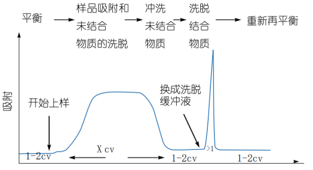 用結(jié)合緩沖液洗滌至少10-15個柱體積,直到吸收峰達(dá)到穩(wěn)定基線或在流出物中沒有物質(zhì)流出。洗滌過程中建議保持流速為1-2ml/min(1ml 體積柱子)。
