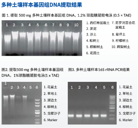 綜上,通過(guò)實(shí)際操作發(fā)現(xiàn),以上幾種土壤DNA提取方法普遍存在DNA得率低,或者DNA得率難于控制等問(wèn)題。土壤樣品或因肥沃,或因貧瘠,或因含水量豐富,或因干枯,或因取樣的深淺度,都會(huì)造成微生物數(shù)量和品種發(fā)生劇烈改變。在一個(gè)小范圍的土壤樣品DNA含量往往會(huì)差別成千上百倍。此外,某些土壤中含有的化學(xué)成分,如重金屬鹽,粘土物質(zhì)都會(huì)造成DNA得率降低。