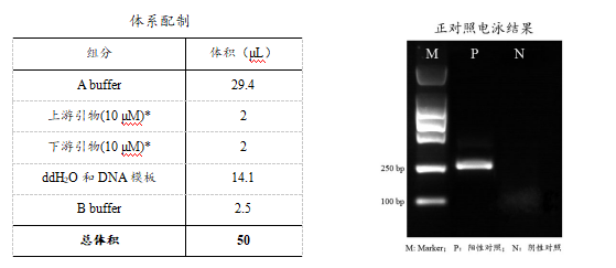 *正對(duì)照反應(yīng)單元體系配制:正對(duì)照模板加入2μL,加入4 μL正對(duì)照引物Mix(包含上/下游引物),其他組分參照體系配制。