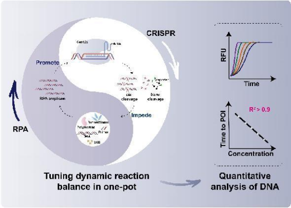 近期,江南大學生物工程學院徐巖教授團隊吳群教授課題組在新型微生物定量檢測技術的開發(fā)中取得了重要進展,研究成果“Tuning the Dynamic Reaction Balance of CRISPR/Cas12a and RPA in One Pot: A Key to Switch Nucleic Acid Quantification”以主封面文章形式正式發(fā)表于《ACS Sensors》雜志(IF:8.9)(https://doi.org/10.1021/acssensors.3c02485)。